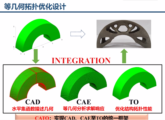 面对工程产品结构与材料设计集成化、功构一体化的迫切需求,数字化创新设计得到了广泛的关注与应用。作为现代工程产品设计的三个重要手段,CAD(计算机辅助设计)、CAE(计算机辅助工程)与TO(拓扑优化)逐渐趋向于独立和完善。当前广泛采用的设计方式为先利用TO算出概念构型,接着经过后处理导入CAD,然后对CAD模型画网格进行CAE,是“先设计,后分析,反复迭代”的过程。然而,目前尚缺少一个统一框架融合产品数字化设计的三个环节,以实现面向产品设计全周期的数字化创新设计。高亮教授团队近年来一直坚持探索高效的数字化创新设计方法与技术,致力于统一工程产品设计中CAD、CAE与TO三个重要元素,即实现几何建模、结构分析、优化设计一体化,以显著减少产品结构与材料的开发周期,降低研发成本。在前期一系列基于参数化水平集拓扑优化设计方法与应用的研究基础上,提出了参数化水平集法结合等几何分析的三维零件设计新思路,初步实现了设计-分析-优化的一体化。