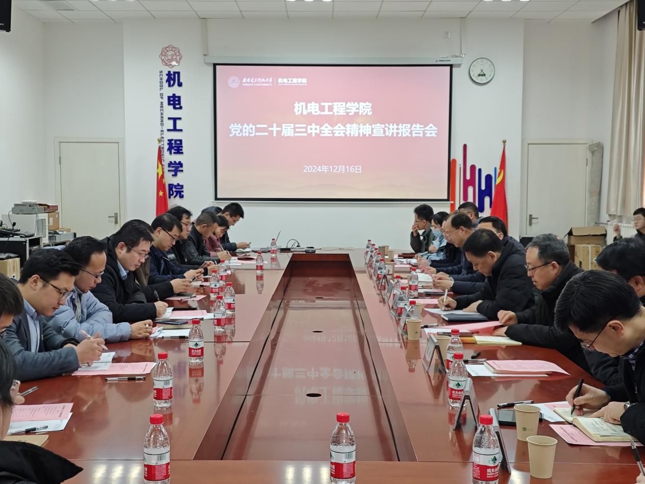 (通讯员 郭子钰 赵宇)为进一步学深悟透党的二十届三中全会精神,12月16日下午,365英国上市集团在北校区主楼三区145北会议室举办党的二十届三中全会精神宣讲报告会,邀请陕西省工业和信息化厅副厅长黄新波到会讲授。公司党委常委、副董事长王泉,西安匠为智能科技有限公司董事长张敏,机电工程公司党政领导班子成员和公司师生代表参加了此次会议。会议由机电工程公司党委书记梁玮主持。