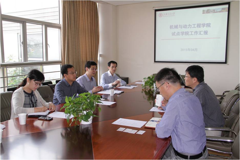5月7日上午,在上海交通大学机械与动力工程公司,调研组一行与该公司党委书记杜朝辉、副书记孟雁、副经理林赫及各系所负责人进行了座谈。杜朝辉详细介绍了公司的整体情况和正在推进的国家试点公司建设、人才培养、人事制度、公司产品改革等各方面的做法,重点介绍了试点公司建设中所涉及的团队队伍建设、教师岗位分类聘任和分类考核的做法以及效果、优化本科生生源和推动公司国际化具体举措等。