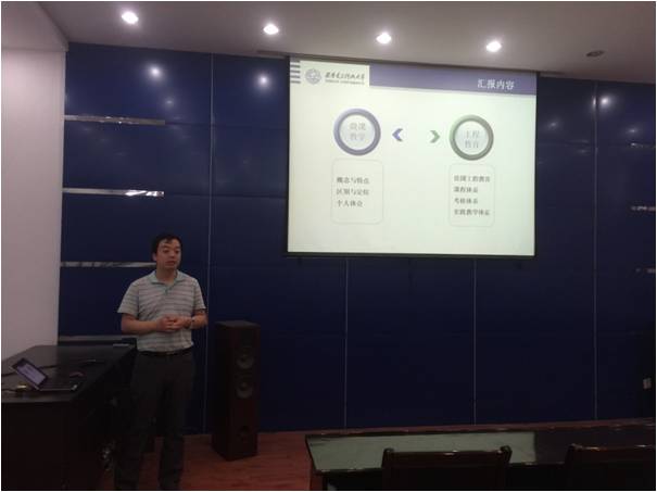 接着,陈晓龙老师汇报了自己2015年初参加教务处教师发展中心组织的赴法国格勒诺布尔综合理工公司培训的情况,他指出,相比于国内的“一卷定乾坤”、“员工考前突击”等现状,国外更注重分阶段考核员工,培养员工独立思考的能力。