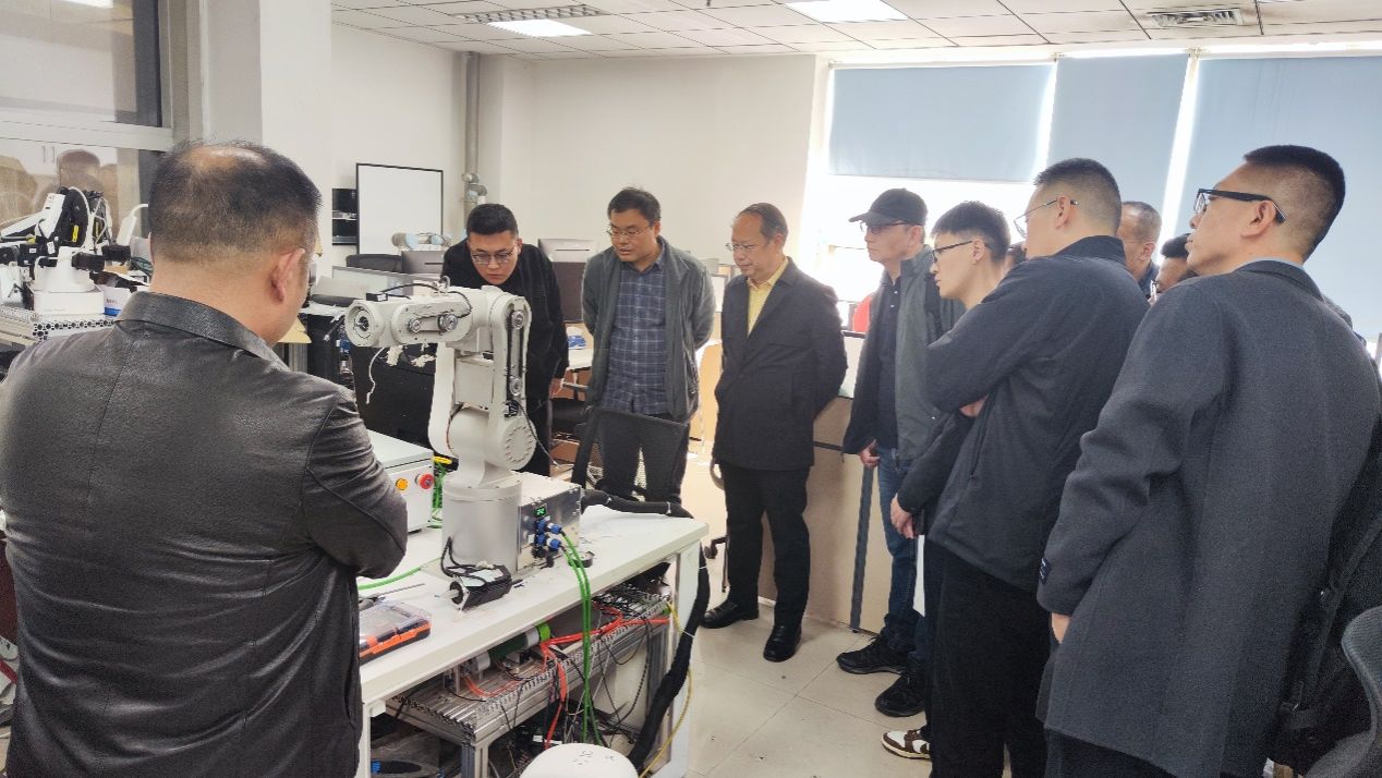 3月28日下午座谈之前,王慷参观了公司机器人智能制造实验室,听取了实验室在数字孪生工业机器人和具身智能机器人柔顺装配方面的工作介绍。