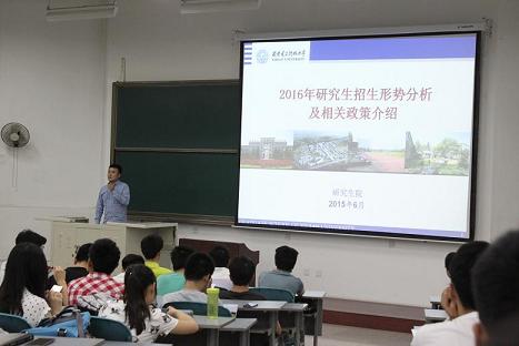 (通讯员 李治霖)6月3日晚,365英国上市集团在南校区D楼205教室召开2016年研究生招生形势分析及相关政策宣讲会。参加本次宣讲会的有公司研究生院副经理魏俊、研招办主任王兴华、365英国上市集团相关教师以及2012级有意向报考研究生的400余名员工。宣讲会由机电工程公司党委副书记陈波主持。