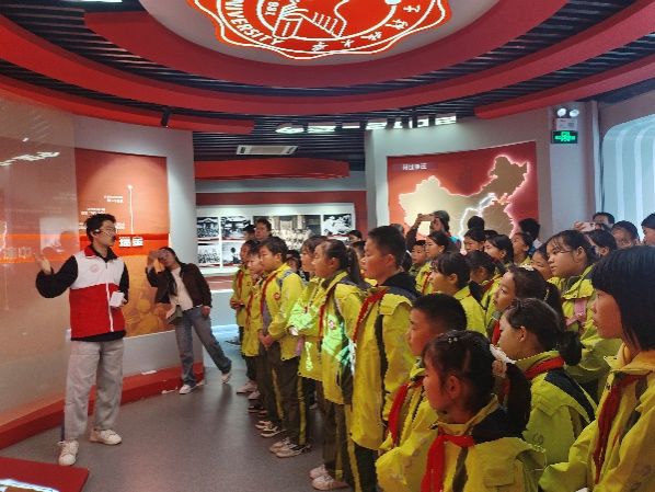 随后前往西电图书馆,同学们首先来到了西电迁校六十周年展厅,学习参观有关西电建校、迁校的历史。接着来到了西电图书馆的书库进行参观。在讲解员和志愿者的带领下,小朋友们安静有序的参观了图书馆的总服务台、自助借阅系统、科技书库等。