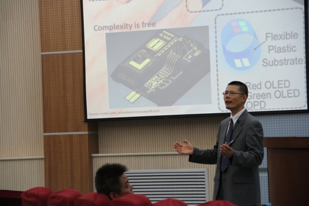 6月30日上午,潘建标教授在北校区阶梯教室112报告厅作了题为”印刷电子学:技术、应用和挑战”的精彩报告,报告会由黄进副经理主持,潘教授介绍了3D打印在电子学领域的应用,印刷电子学采用的印刷方法,印刷电子产品的应用领域和印刷电子学与传统的硅芯片进行灵活的混合使用面临的挑战,会后并与现场师生进行了交流。