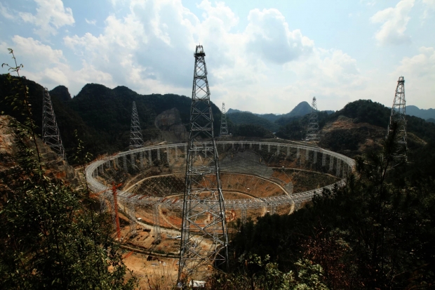 建造单口径射电望远镜,方案有两种:一种是全可动的抛物面天线,比如美国的绿岸射电望远镜(Green Bank Telescope),口径100×110米,重达7700吨,口径再大就会因为重力因素,超过工程极限;另一种是主反射面不动而馈源动的球反射面射电望远镜,比如美国利用喀斯特地形建造的阿雷西博射电望远镜(Arecibo Radio Telescope),口径305米,支撑馈源的悬空背架重达1000吨,口径再大就只能创新方案,否则造价将难以接受。