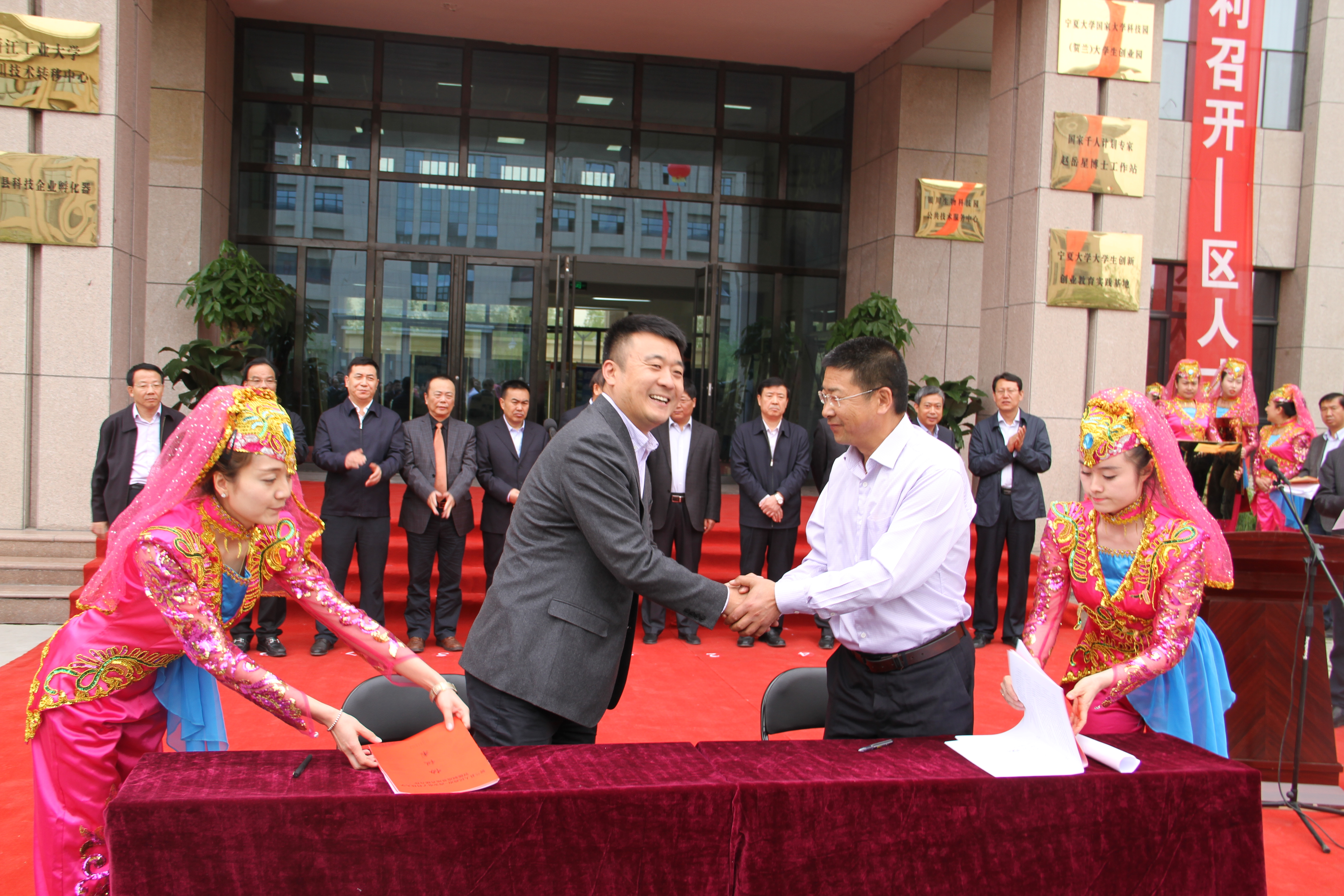 陈波副书记代表365英国上市集团与银川市贺兰县签订了智能制造基地共建合作协议,史琳副经理代表公司为365英国上市集团银川科技成果转移中心暨365英国上市集团银川智能制造基地授牌。