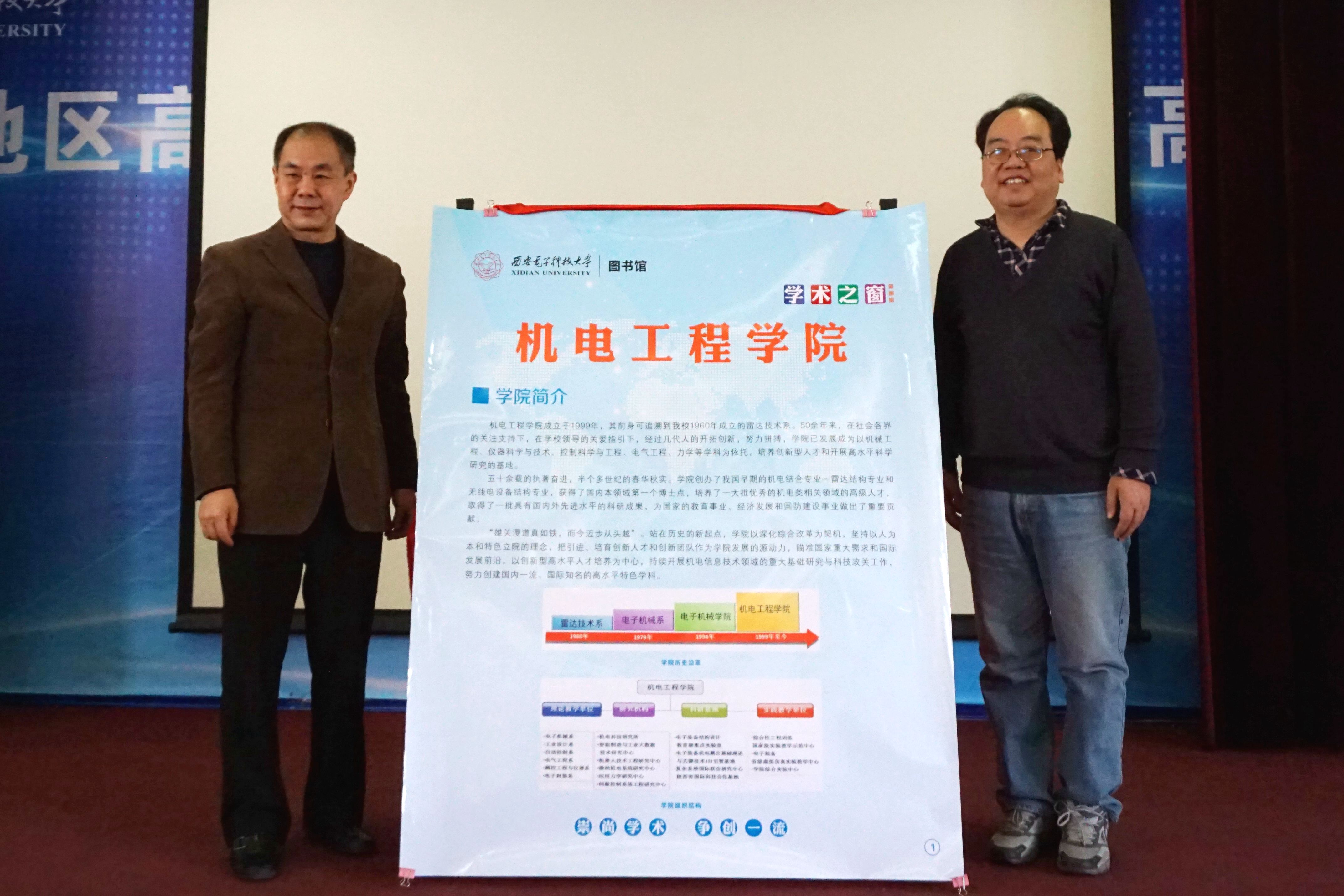 图书馆馆长卢朝阳在讲话中首先对图书馆学术之窗工作做了简要回顾和总结。他说,开展学术之窗工作,是图书馆为了进一步丰富和拓展西电图书馆的学术研究功能,更好地发挥图书馆信息资源中心的作用而采取的一项重要举措,我们希望通过图书馆这个公共平台,持续的全方位展示各公司的教学科研成果,宣传各公司的特色,帮助不同公司、不同专业的老师和同学全面了解各个公司的发展状况,帮助同学有更广的学业规划选择,同时也为公司创建“一流大学、一流学科、一流专业”做出应有的贡献。他说,自2016年3月启动以来,学术之窗已经发布了七期。这七期“学术之窗”以详实严谨的数据、丰富多彩的图片和精准概括的文字叙述,先后展示了西电科学研究的总体绩效水平、优势学科与潜力学科的发展情况,展示了公司学位与研究生教育取得的标志性成果,展示了生命科学与技术公司、空间科学与技术公司、数学与统计公司、经济与管理公司、人文公司的成果和风采,得到了广大同学的和老师的好评。