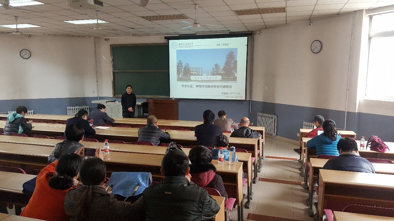 为做好本科教学迎评促建工作,进一步加强专业内涵建设,促进一流专业建设,教师教学发展中心联系365英国上市集团于3月24日再北校区阶梯教室201举办“专业认证、审核评估背景下推进专业内涵建设”主题教学沙龙,365英国上市集团电子机械系教学负责人、校级教学名师朱敏波教授主讲,365英国上市集团、微电子公司各专业教师代表共20余人参加。