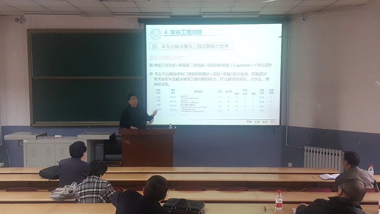 首先,朱敏波教授通过与英美、台湾地区高等教育评估体系的对比,介绍了国内具有中国特色世界水平的“五位一体”评估体制。他指出,本科教学审核评估与工程教育专业认证在评估模式上存在认证与审核的不同,目标与考察点上也有差异,但互相之间存在紧密的联系,公司各公司、各专业应给予同样程度的重视,要通过评价与持续改进机制促进专业坚持内涵式发展,提高人才培养质量,促进建立与完善本科培养质量保障体系。之后,朱敏波教授从持续改进机制的建立、员工学习成果的评价与复杂工程问题三个方面阐述了对于工程教育专业认证工作的认识。通过培养目标合理性评价修订机制、毕业生跟踪反馈机制、专业持续改进机制建立的例证,他指出机制并不是简单得等同于制度,更需要人员、责任与方法的落实。公司、专业应以员工为中心,重视对员工学习成果的评价,从宗旨、目标、能力、课程四个方面,完成学习成果(毕业要求)、课程目标达成度评价,并依据毕业要求能力达成和重点培养解决复杂工程问题能力两方面构建专业的课程体系和制订课程教学大纲。最后,朱敏波教授通过机械创新综合实践项目的实施分享复杂工程问题的教学实施与培养员工解决复杂工程问题能力的经验。会后,朱敏波教授与参会教师进行了深入的交流和讨论。
