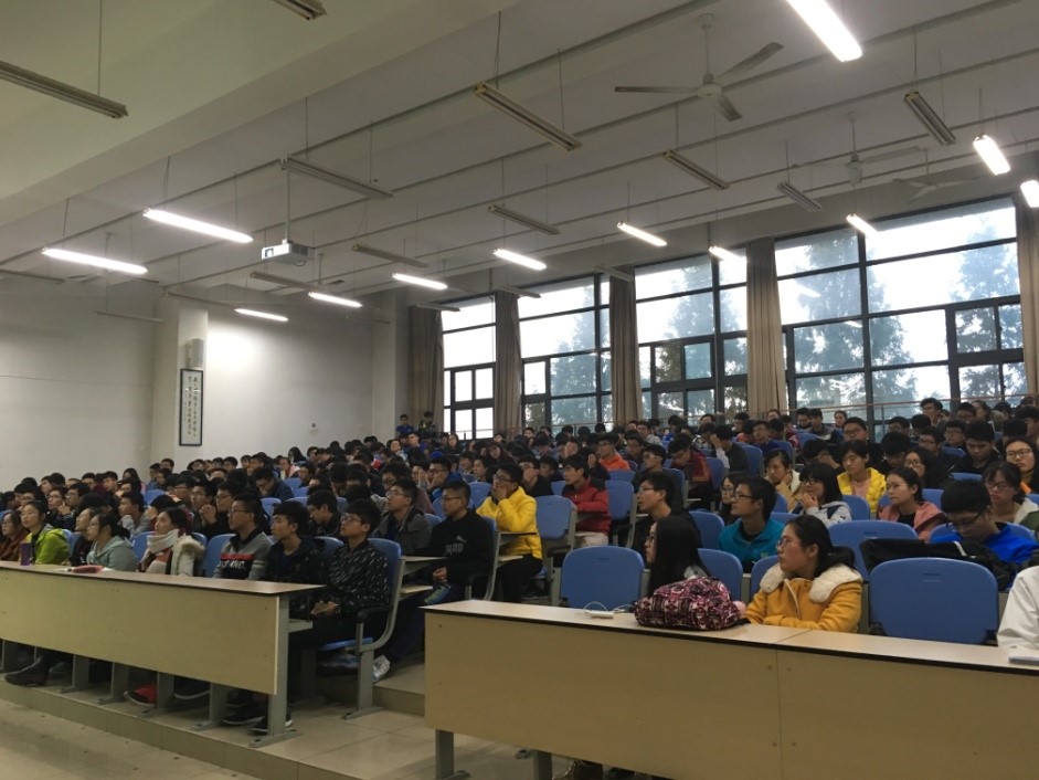 在一个半小时的交流中,三位学长以轻松幽默的话语细致地讲解了保研的注意事项,同学们认真记笔记,积极发言,现场气氛十分活跃。三位学长先是向同学们详细地说明了保研流程,以近年来的保研数据鼓励大家积极准备,并分享了自己的保研经历,接着就如何准备保研进行了生动详尽的介绍。