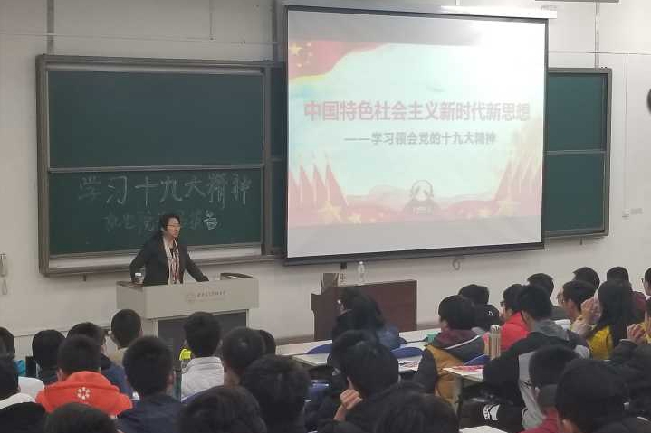 接着,陈老师又向在座师生介绍了新时代新思想的丰富内涵,她指出:是中国独特的制度优势,让我们能在世界纷杂的环境中屹立不倒,我们都应为之自豪。