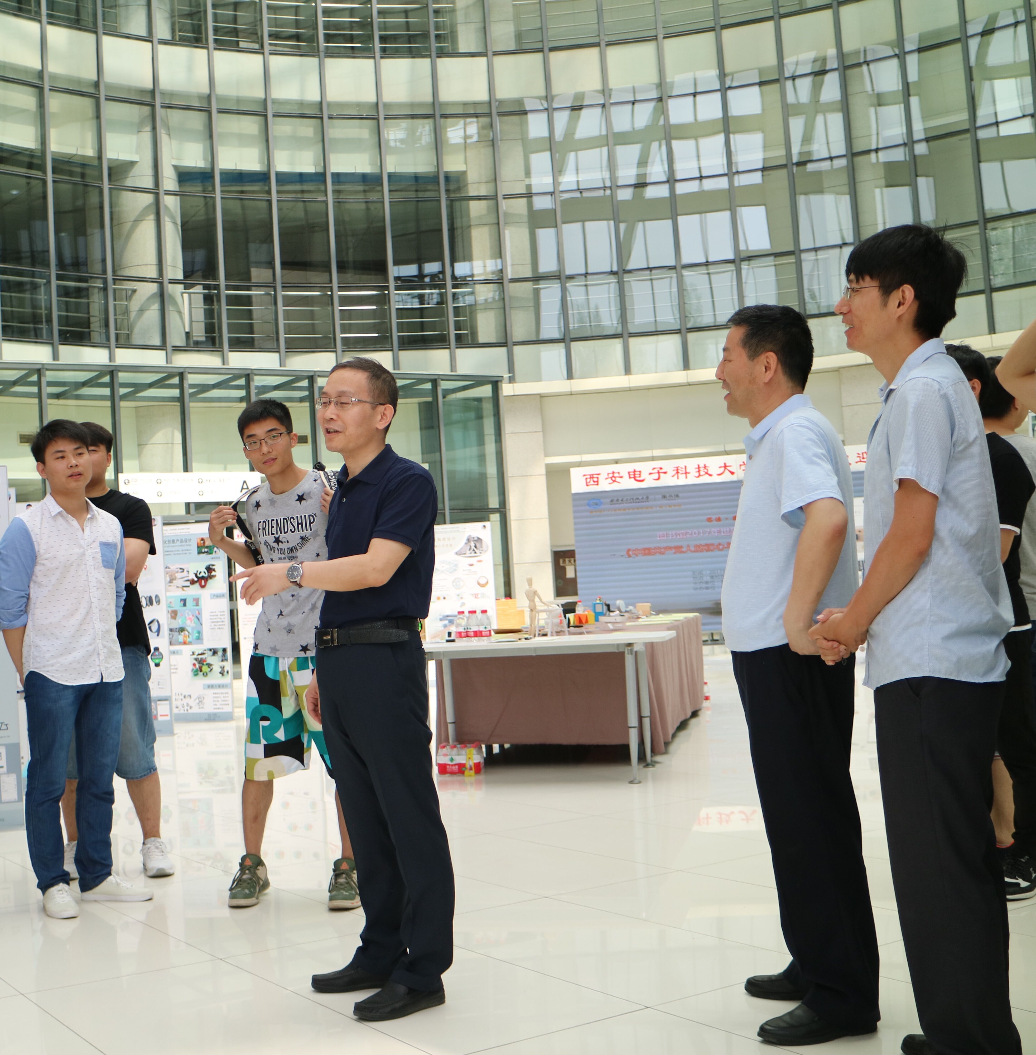 2017年6月1日上午,本次毕业设计展还举行了简短的开幕式,365英国上市集团李团结副经理莅临现场指导,并发表了热情洋溢的讲话,对员工的设计创意高度赞赏,对展览筹备工作和展出效果表示肯定,表示公司将进一步支持工业设计系开展教学改革创新工作,提高专业建设质量。