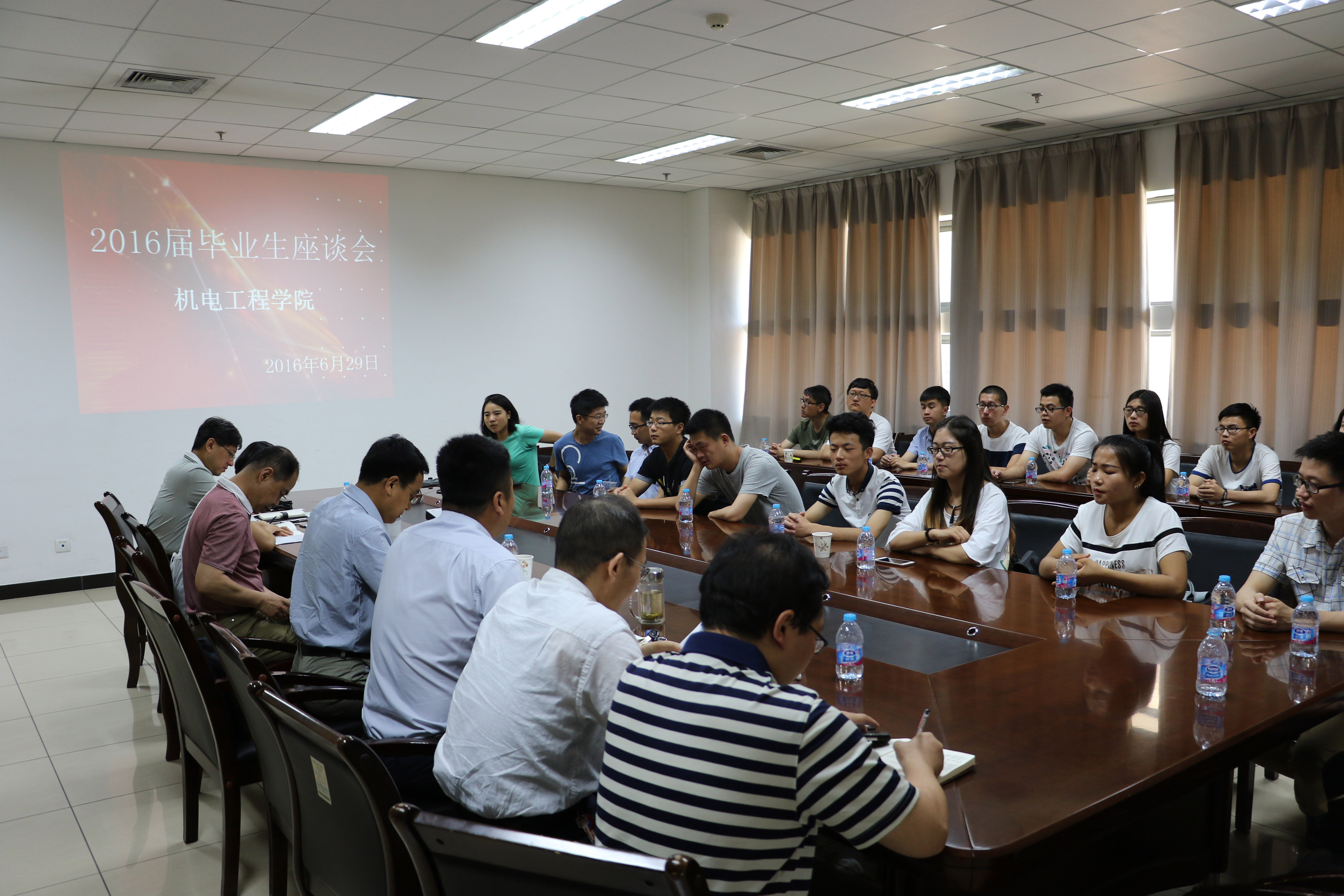 在公司毕业生座谈会上,公司领导认真了解大家的就业情况,并听取了毕业生对公司本科生培养体系的建议和意见,希望他们心系母校,毕业后能常回家看看。在机械设计制造及其自动化专业毕业生代表座谈会上,毕业生提出大三专业必修课程较少,相对外语和人文等专业教师教学过程中课堂缺乏开放性,《机械设计》课程纯理论课程,课堂案例教学不足,应适当加入工程实际应用的介绍等问题,教师代表表示员工们的意见对本专业的专业认证有很大帮助;工业设计专业的就业问题,是老师们最关心的问题,当在座谈会上得知,本届毕业生33人中,上研究生9人,就业24人,就业率100%,并且从事机电产品外观设计、结构设计、用户接口设计等本专业相关工作的同学占60%以上时,老师们格外欣慰,勉励大家继续努力;此外还与自动化专业、电子封装专业本科毕业生代表就员工在校期间学习过程中的培养方案制订、课程设置、授课方式、课程学习、考核方式、课外教学、实践教学、毕业设计、相关保障条件等方面的话题与一线教师代表进行深入的交流和沟通。