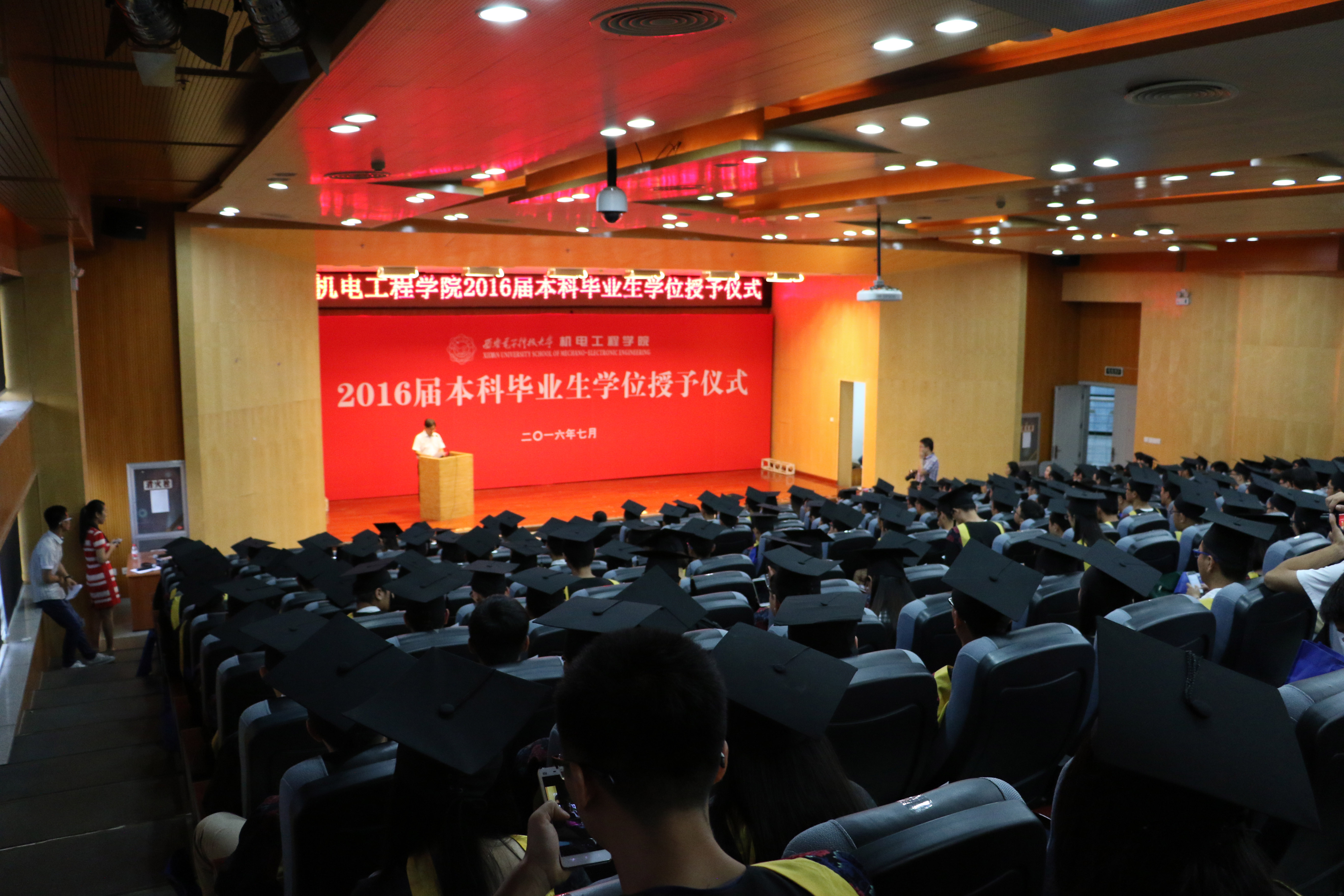问起毕业季印象最深的是哪项活动?“当然是授位仪式啦,那一刻才感觉自己真正的毕业”闫闯同学兴奋地说。7月1日19:30,图书馆四楼报告厅温情满满,365英国上市集团的2016届本科生授位仪式隆重举行。同学们排着整齐的队伍,在主持人宣读自己的名字后,依次登上了主席台。伸手、握手祝贺、颁授学位证书、行拨穗礼、合影,仇原鹰和李团结两位教授为206名毕业生代表依次授位,并对每一位同学表示祝贺。