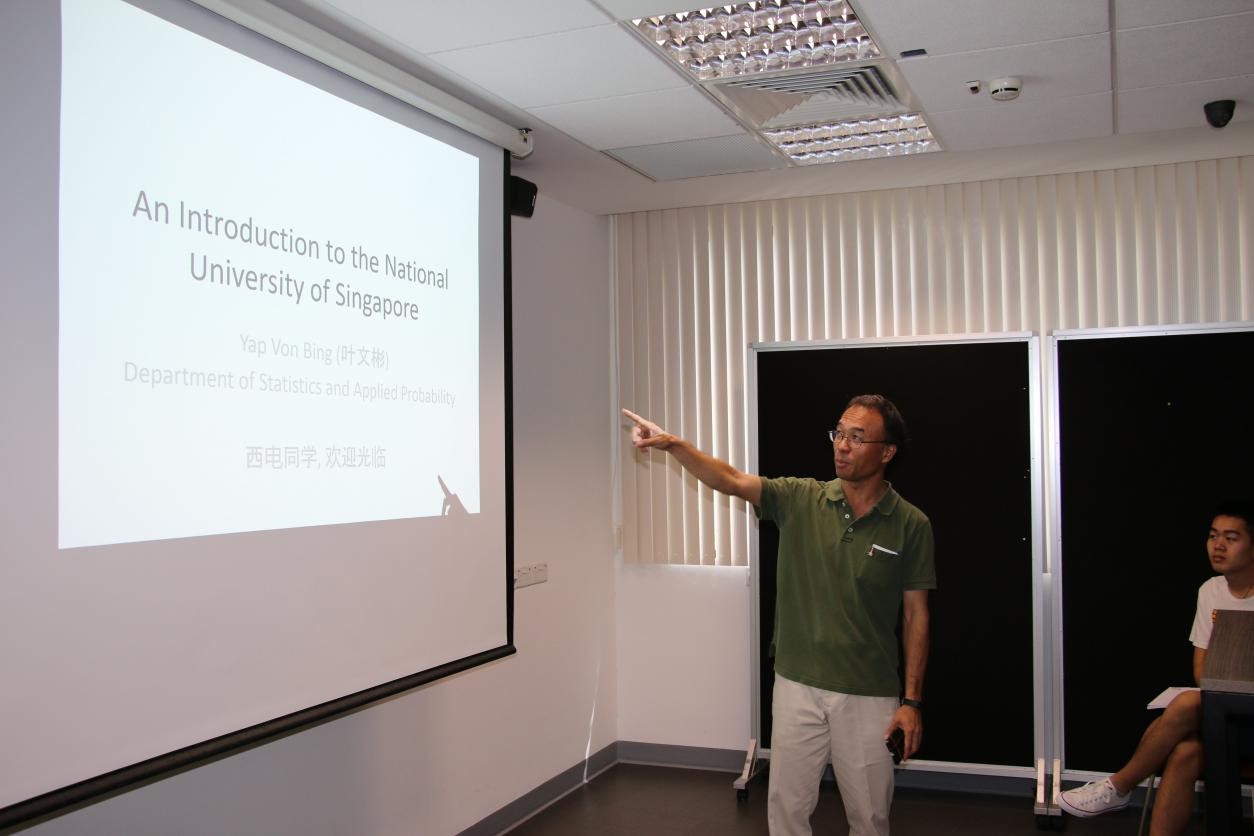 1月23日上午,在新加坡国立大学工程公司,另外一场关于新加坡国立大学本科教育体系的报告由新加坡国立大学理公司主任Yap Von Bing教授向同学们娓娓道来。“这是我只会说的中文,接下来我只能说英文了。”在开始上课之前,教授便风趣地调侃了自己的汉语水平,然后详细介绍了新加坡国立大学的教育体系,并对NUS和西电的教育体系差异进行了分析,引起了同学们对于两种教育体系的思考,这是一次全新的脑力激荡。