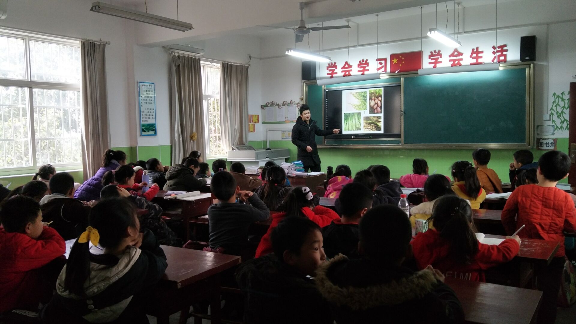 下午,支教人员准时到达三张逸夫小学,迅速以饱满的热情投入到志愿工作中去。在教学过程中,所有志愿者都尽自己所能传授知识,孩子们的笑脸鼓舞了志愿者。面对调皮的孩子,志愿者会耐心教导,面对不认真听讲的孩子,志愿者会想方设法的吸引他们的注意力,在营造一个欢快活泼的课堂气氛的同时也让孩子们更好地学习知识。本次支教主要给同学们简单介绍了植物保护和动物保护的相关知识,让同学们对植物各部分的组成,以及各部分与人们生活的相关联系有了一定的了解。三二班志愿者通过讲述忠犬八公的故事,让孩子们认识到动物和人类之间可以建立的深深的友谊,从而教育孩子要善待动物。志愿者还讲到一些濒危动物的现状,让孩子们树立保护动物的观念。在此过程中,志愿者与孩子们一起互动做游戏,让他们在游戏中体会环保知识的意义,充分调动了孩子们的积极性。