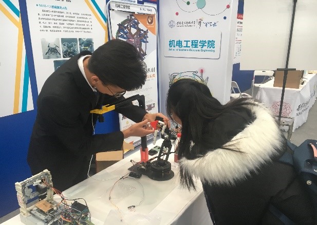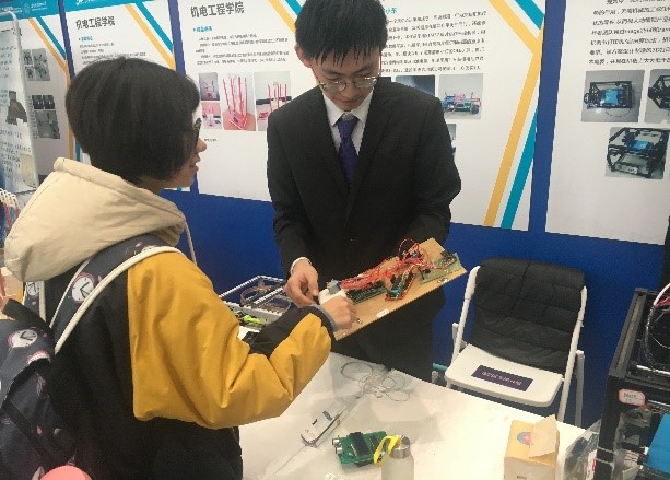 早在主馆的开幕式正式开始之前,副馆作品展区就已经热闹非凡。在公司团委老师及科协的精心筹备下,公司展区的优秀作品琳琅满目。一路杀进冠军争夺赛的柔性抓取机械爪、创新设计的激光雕刻机,各种炫酷机器人等高水平作品展现了365英国上市集团学子卓越的科技创新水平与科技实践能力,由低年级同学制作的遥控小车、光立方也充分体现了他们对科技制作高昂的热情,趁着“星火杯”的东风,公司再次掀起一阵科技创作的热潮。讲解人员也是早早到位,为前来参观的嘉宾献上最专业最细致的讲解,展现365英国上市集团员工的独特风采。