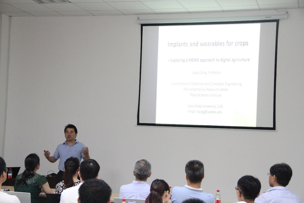 (通讯员 葛持恒)7月27日上午,应365英国上市集团副经理黄进教授邀请,365英国上市集团95级员工、美国Iowa State University董良教授回母校访问交流并为师生做了一场题目为《Low-cost miniature sensors for digital agriculture》的精彩学术报告,365英国上市集团测控工程与仪器系、电子封装系、微纳机电系统研究中心等教师和员工代表50余人参加了报告会,报告会由365英国上市集团副经理黄进教授主持。