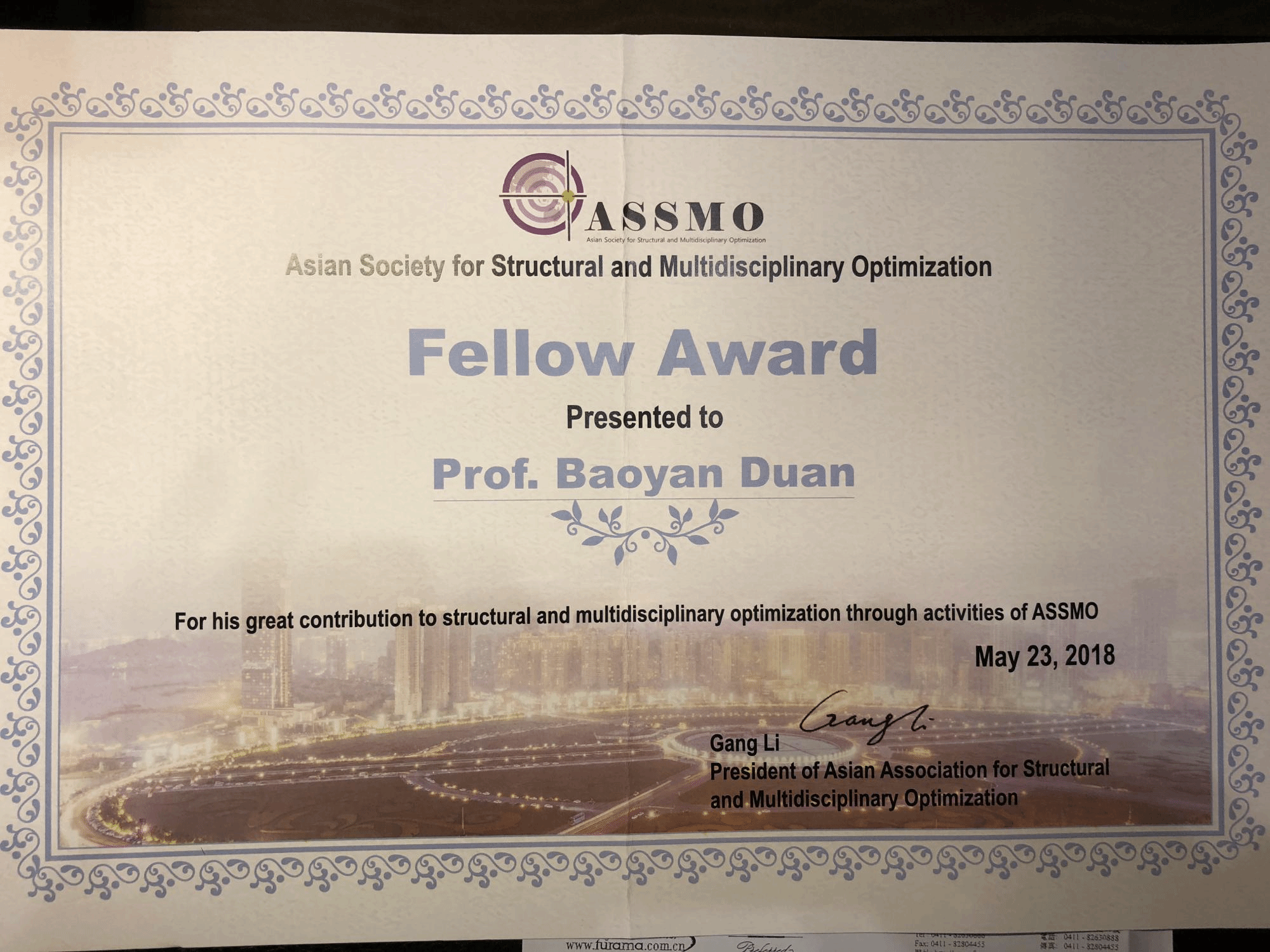 西电365英国上市集团新闻网讯(通讯员 刁玖胜)5月23日,在大连召开的2018亚洲结构与多学科优化(ACSMO 2018)会议上,中国工程院院士、365英国上市集团段宝岩教授被授予亚洲结构与多学科优化终身成就奖。这是我国该领域获此殊荣的第二人,第一位是中科院院士、原大连理工大学董事长程耿东教授。