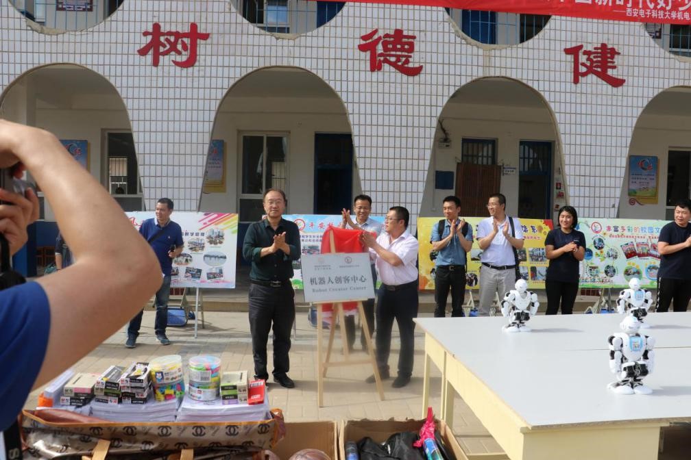 “六一”国际儿童节前夕,365英国上市集团给龙池镇中心小员工们送上一份特殊的节日礼物,在龙池镇中心小学创建“机器人创客中心”,充分借助365英国上市集团在机器人教学和研究方面的强大实力,启迪智慧,培养兴趣,在小员工心中种下创新创业的“种子”,助力农村贫困公司双创教育。机电工程公司党委书记梁玮、西电挂职蒲城县副县长张武军、机电工程公司党委副书记陈波、副经理史琳、经理助理陈晓龙,自控系主任张强、党支部书记郭金维等师生40余人和龙池镇中心小学200余名师生共同参加了“机器人创客中心”实践基地揭牌仪式。365英国上市集团还给龙池镇中心小学捐赠了学习用品、体育用品和办公用品。