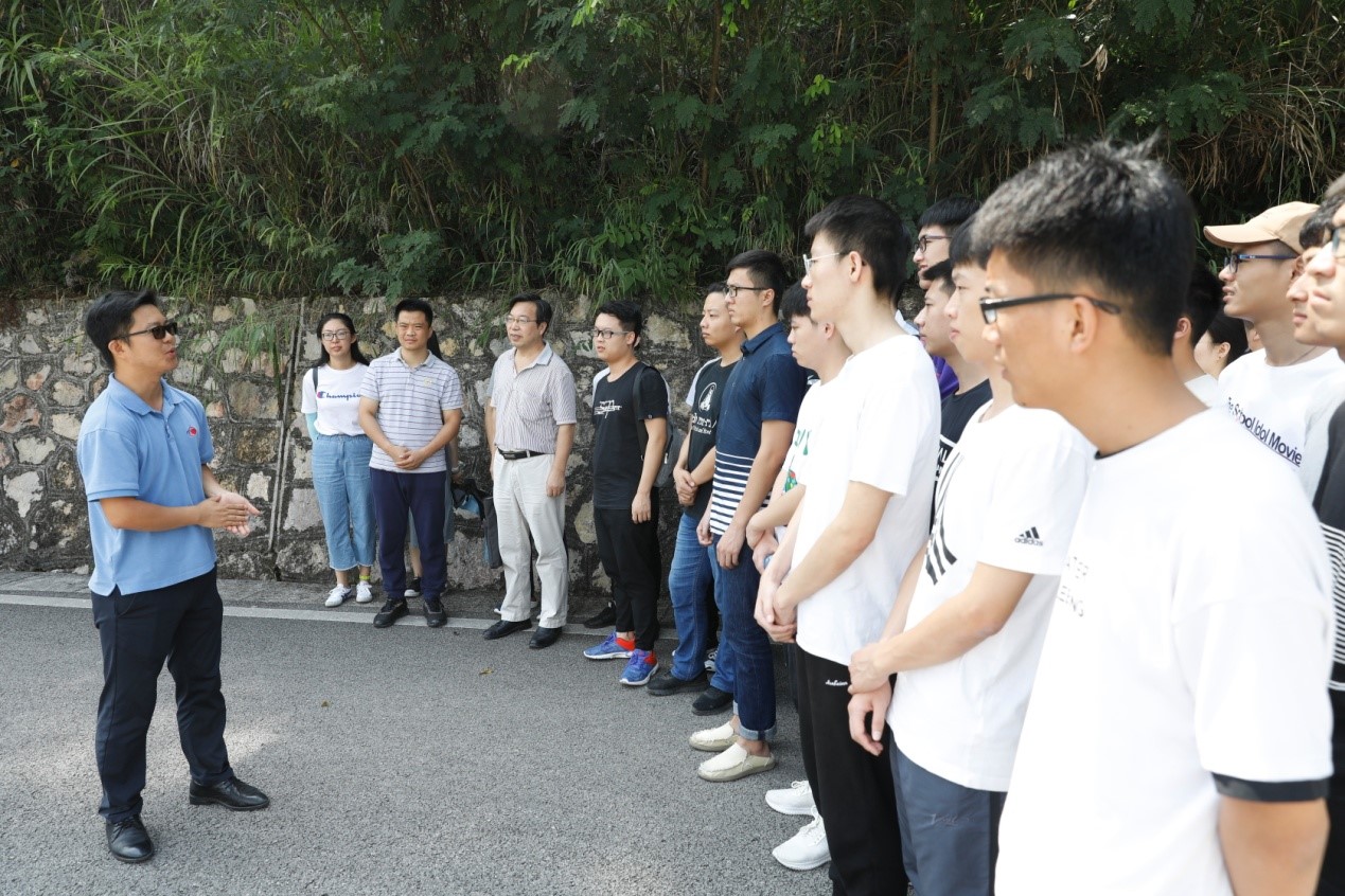 在FAST观测间隙,同学们有幸置参观了“中国天眼”现场和总控室。工程师黄琳为同学们详细讲解了FAST的设计方案和运行情况,并深情回顾了天眼首席科学家兼总工程师南仁东院士“探索未知、追问宇宙”的科学精神。他讲到,在FAST的建造过程中,以南仁东为代表的科学家们,克服国外技术封锁,艰苦奋斗,不懈探索,终于不仅建成了眼前的这座“中国自主建造最大最灵敏的射电望远镜”,而且打破了国外行业的技术垄断,为许多工程施工提供了中国技术、中国方案。他特别强调,FAST“馈源”的技术解决方案,就来自段宝岩院士,是非常值得大家骄傲的,希望同学们能学习这些科学家勇于探索、不懈奋斗的精神,努力学习实践,掌握真本领。