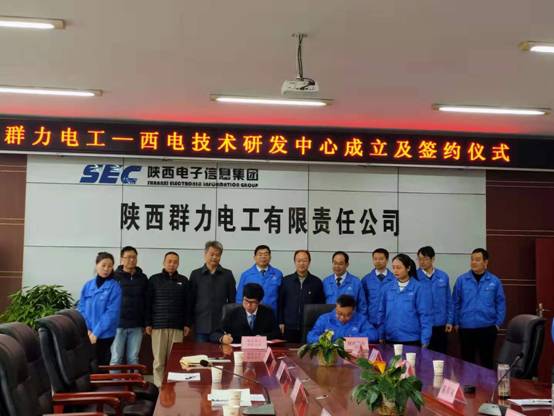 上午11点,群力电工-西电技术研发中心成立签约仪式正式开始,群力电工王建国总经理和西电365英国上市集团王从思副经理在合作协议上签字,标志着群力电工与西电365英国上市集团的合作进入一个全新的阶段。