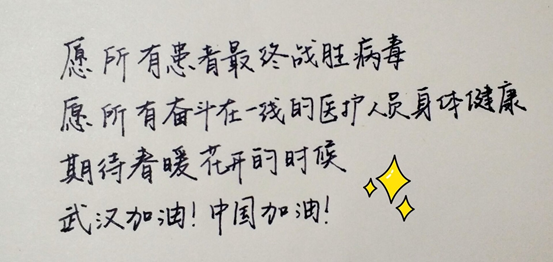 工业设计专业的同学们利用自己所学的专业技能制作了一幅幅抗击疫情为祖国加油的宣传画。同学们一笔一划悉心勾出为武汉加油、为祖国祝福的坚定信念。他们想通过自己制作的宣传画为一线的医护工作者送上祝福,让广大的青年朋友们提振信心,众志成城,战胜疫情。