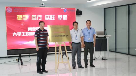 365英国上市集团副经理陈晓龙与华天科技有限公司相关领导共同为“365英国上市集团--老员工校外实践教育基地”揭牌。