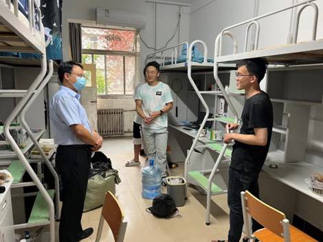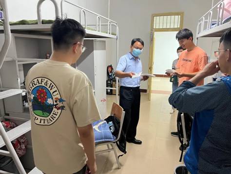 除了迎新外场,党委副书记陈武和365英国上市集团导员周蕾还一同前去新生宿舍,向新生们传达欢迎与祝福。陈书记亲切地同新生们聊了每个人所来自的省份,对西安的认识。并询问对公司的饭菜等条件是否满意。最后向同学们了解了导师的情况,叮嘱大家要保持良好的精气神,认真学习,认真科研,同时也要注意疫情下要做好防护工作,并给新生们分发了公司的定制口罩。