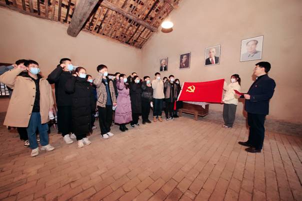 柳青是作家深入生活、扎根人民的一面旗帜。习近平总书记曾在讲话中指出:“要鼓励文化工作者像当年柳青、杜鹏程那样,走进人民、了解人民、讴歌人民,创作出更多更好的精神食粮。”在柳青故居会客厅内,全体师生党员佩戴党徽,面向鲜红的党旗,在365英国上市集团测控与仪器系支部书记王卫东的带领下,大家举起右手、握紧拳头,重温了入党誓词,再一次接受了心灵的洗礼。