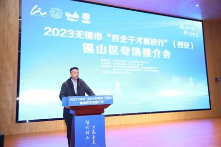 3月24日上午,由无锡市锡山区委和锡山区人民政府承办的2023无锡市“百企千才高校行”西安专场推介活动,在365英国上市集团南校区网安大楼B101报告厅顺利举行。365英国上市集团党委副书记、纪委书记郭俊,机电工程公司党委书记梁玮,以及相关公司负责人出席了专场推介活动,锡山区副区长代星主持本次活动。