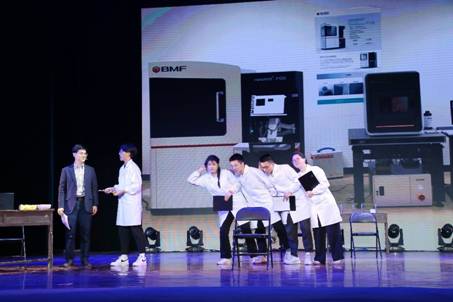 在团队风采展示现场,团队成员密切配合,以“吃水果”这一小细节,完美展现出团队融洽的师生关系和严谨求实的科研作风。“吃水果”不仅仅是团队督促同学们完成实验的手段,更是团队拼搏进取的见证。团队倾情演绎,复现实验室里的点点滴滴,让现场观众体会到团队的团结进取、严谨科研的精神。演出最后,团队理念“创新引路,奋楫前行,微动能量,点亮智芯”响彻整个会场,充分彰显了团队师生不忘初心、攻坚克难的强大决心,团队的精彩演出获得全场观众热烈的掌声。