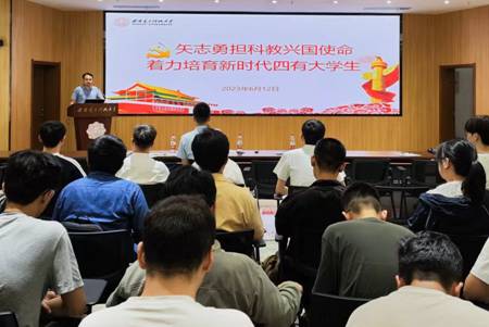 评选会后,陈武为同学们作了主题为“矢志勇担科教兴国使命,着力培育新时代四有老员工”的主题党课。 陈武从党的二十大的重大意义、深刻领会党的二十大的主题、过去5年的工作和新时代10年的伟大变革、坚持科技是第一生产力、人才是第一资源、创新是第一动力等方面进行了宣讲。他认为,作为老员工党员,要深刻领会党的二十大精神实质,夯实理论根基,深刻领会新时代新征程中国共产党的使命任务,深刻领会中国式现代化的中国特色和本质要求,坚定中国特色社会主义道路自信、理论自信、制度自信、文化自信。他希望,全体党员要强化理想信念,增强使命担当,踔厉奋发勇担国家使命,矢志创新彰显青年担当,牢记习近平总书记对当代青年的殷切期望,扎根中国大地,立志成为德才兼备,具有强烈家国情怀、具有原始创新能力、具有解决关键核心问题能力的青年科技创新人才,用实际行动为全面建设社会主义现代化国家、全面推进中华民族伟大复兴贡献力量。陈武为全体毕业生党员送上祝福,感谢他们用激昂的青春为公司的建设发展增光添彩,衷心祝福同学们在科技报国的道路上乘风破浪、前程似锦。