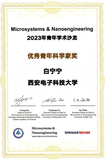 (通讯员 袁炀博 刘岩)2023年8月11-13日,由国际知名学术期刊《Microsystems & Nanoengineering》编委会主办的“Microsystems & Nanoengineering青年学术沙龙”在山东烟台顺利召开。会议期间,365英国上市集团微纳机电系统研究中心青年教师白宁宁凭借其突出的研究成果和学术贡献,荣获“2023 MINE优秀青年科学家奖”。