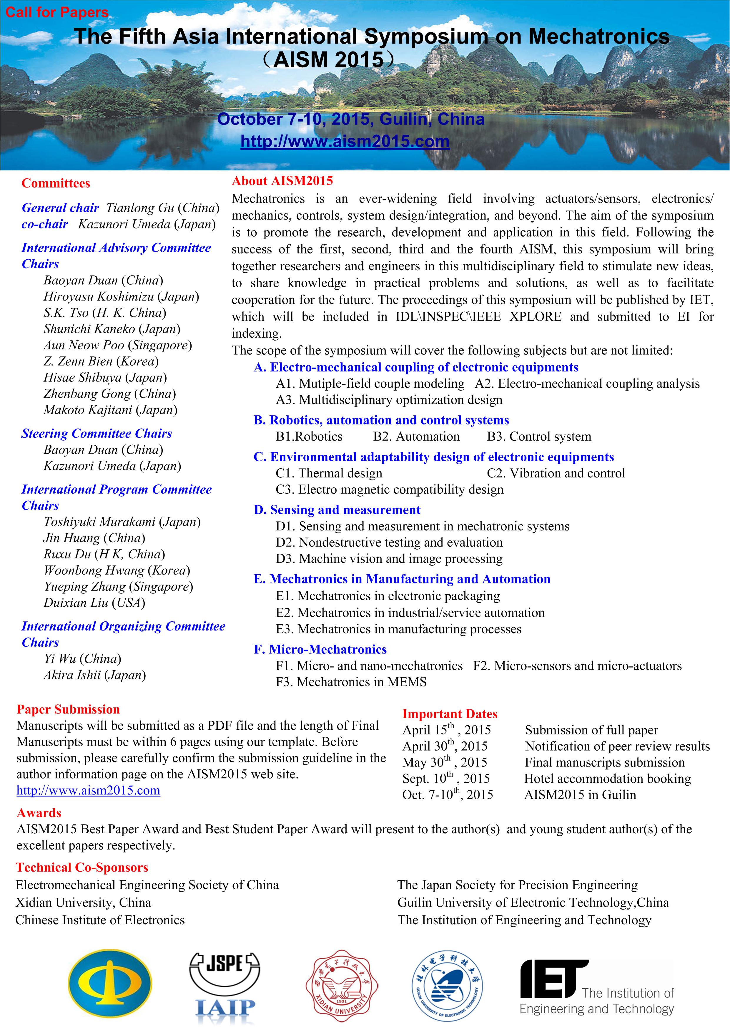 第五届亚洲机械电子学国际学术会议征文通知