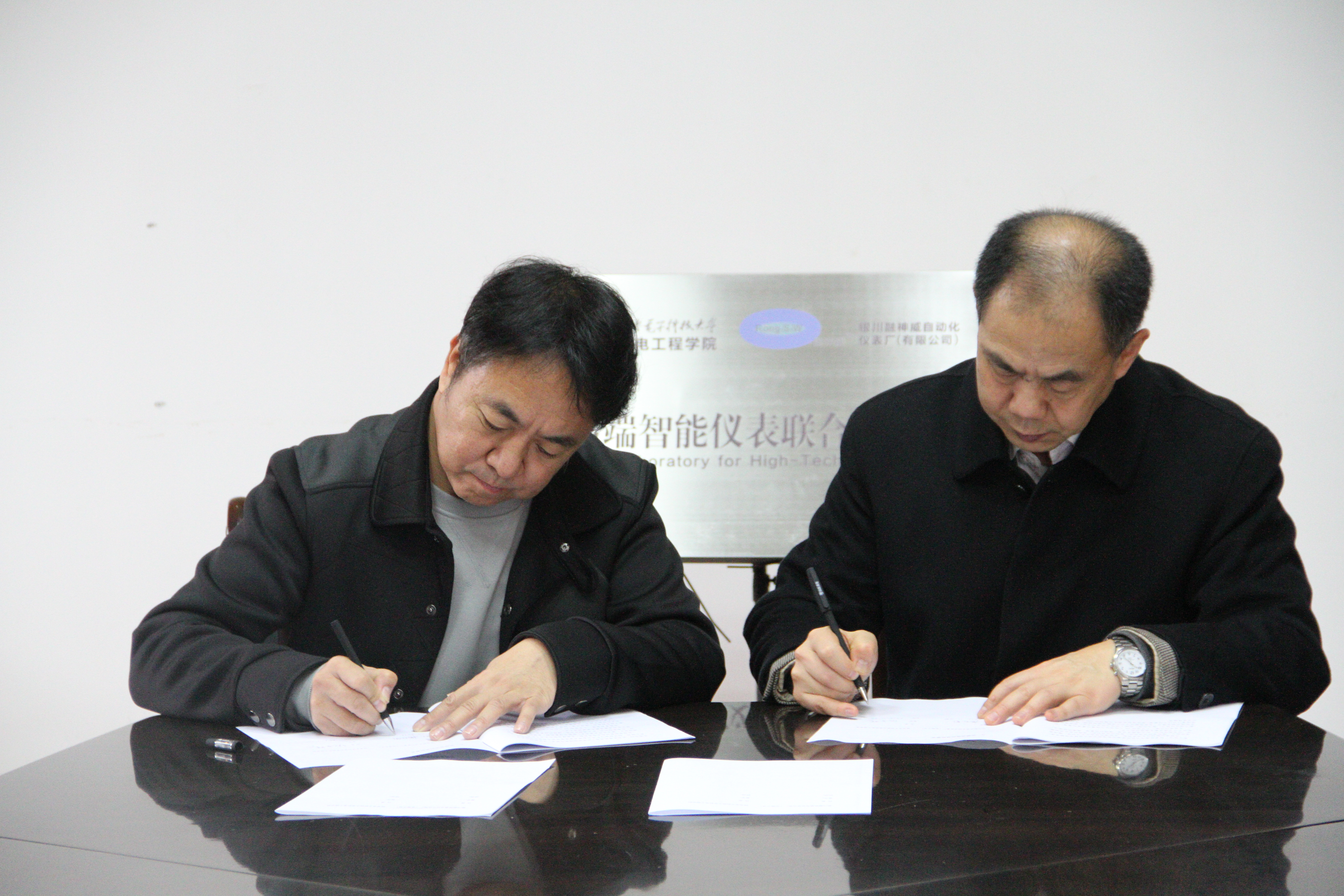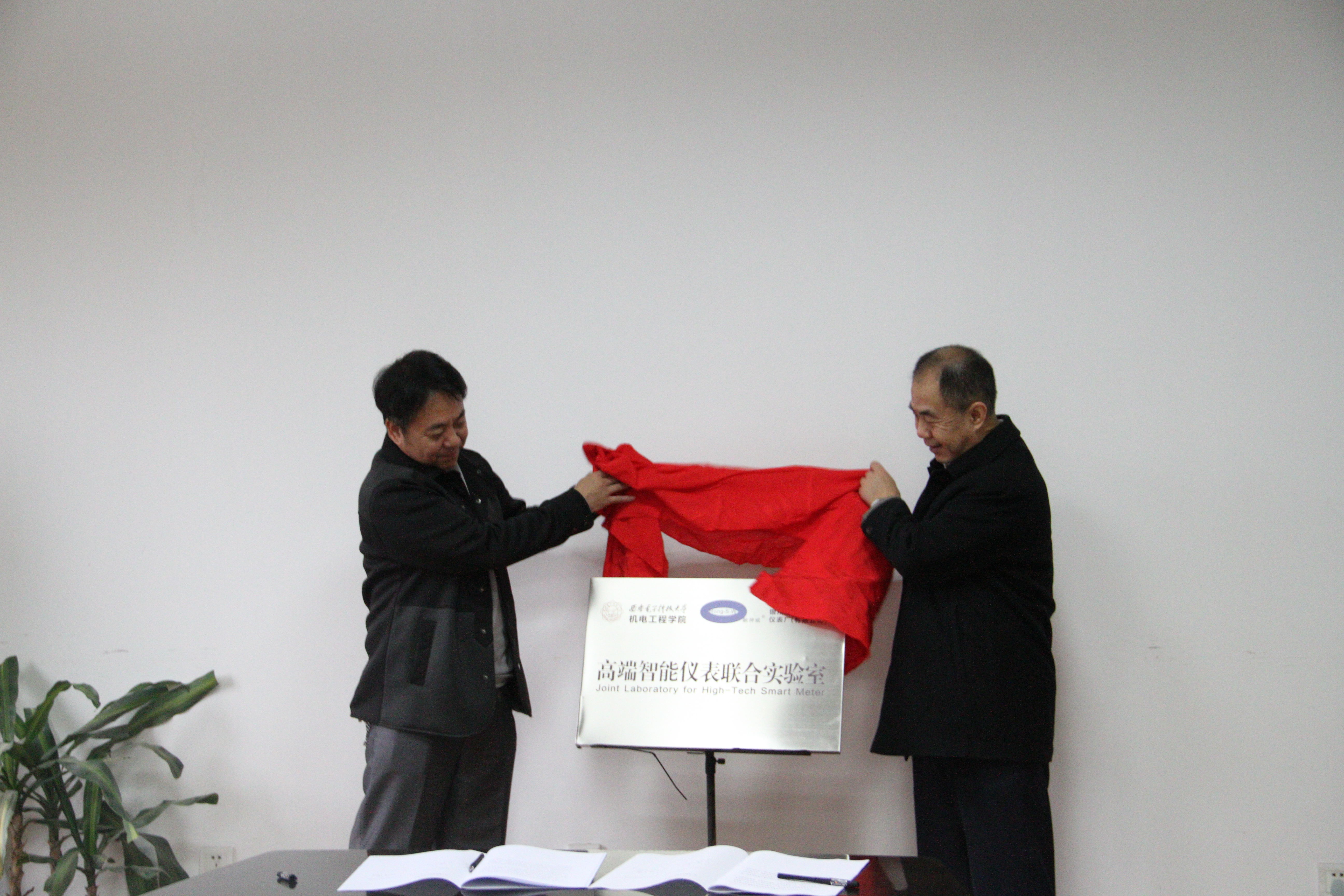 最后,仇原鹰经理和唐力南董事长共同签署了“高端智能仪表联合实验室”产学研合作框架协议并为联合实验室揭牌。