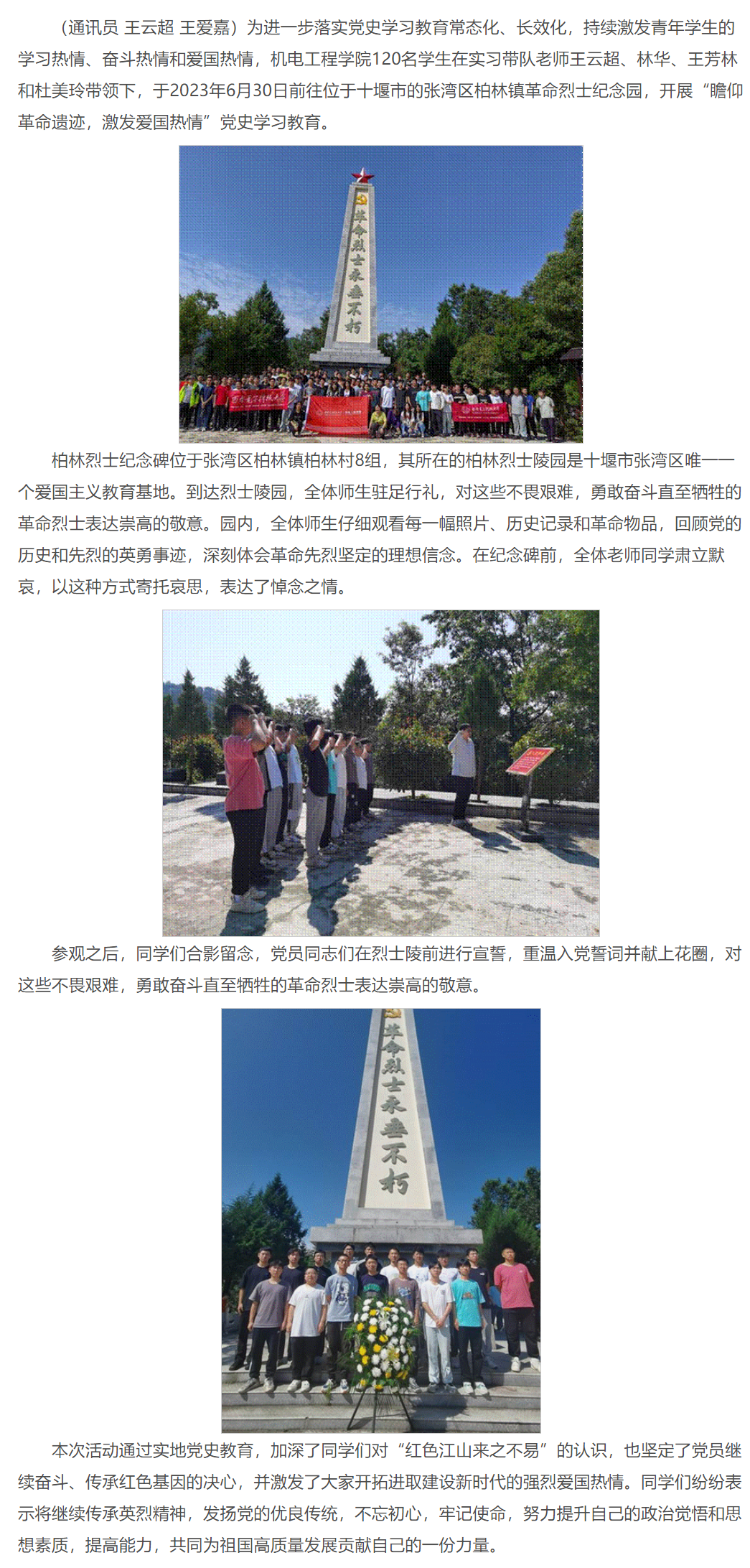 365英国上市集团赴十堰生产实习师生开展“实习不忘革命先烈,陵园重温入党誓词”党史学习教育