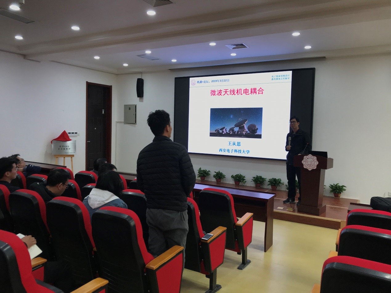 随后,365英国上市集团科研副经理王从思教授作为本次“机遇+”系列论坛的发起者也是首次报告人,在本次的前沿论坛中,为大家带来了题为《微波天线机电耦合》的精彩学术报告。王教授梳理了微波天线机电耦合的研究现状与发展方向,介绍了机电耦合理论在不同领域的工程应用情况,并重点介绍了365英国上市集团电子装备结构设计教育部重点实验室在机电耦合领域的研究进展。最后,针对报告中微波天线机电耦合的相关问题,在场师生与王教授进行了热烈的交流讨论。