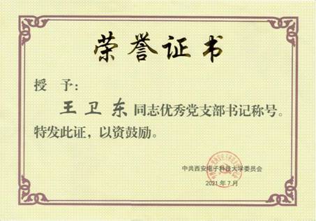 2019年任职党支部书记以来,王卫东曾获校“优秀党支部书记”荣誉称号和党建知识竞赛“优秀个人”称号;测控系党支部连续两年获得先进党支部称号,并入选了校“双带头人工作室”(2021年)和“样板党支部”(2022年)建设单位。与研究生支部共建,联合开展“教学科研沙龙”活动,师生共同学习共同进步,在思想上师生之间形成良性反馈和同频共振。